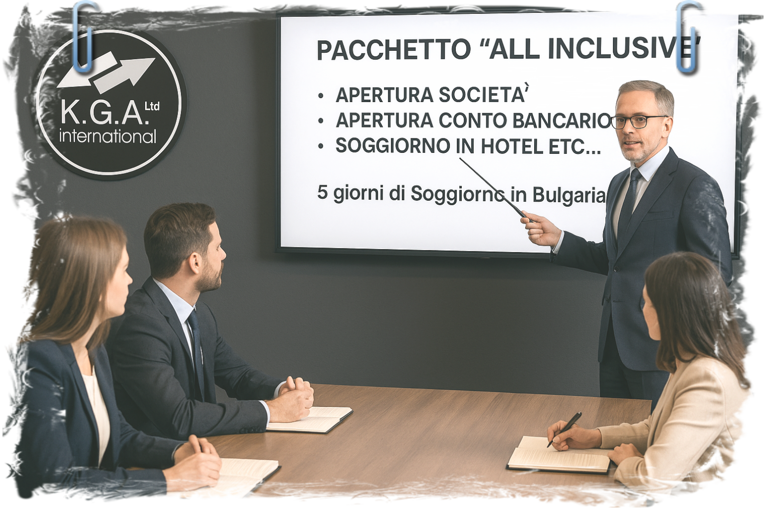 "La nostra Società, in sinergia con studi professionali partner, strutture ricettive e ristorative selezionate, ha ideato il pacchetto "Five days all-inclusive" che copre integralmente i costi legati all’avvio della propria attività e al soggiorno di 5 giorni in Bulgaria. Un’offerta esclusiva, pensata per gli investitori che hanno scelto di affidarsi alla nostra esperienza."